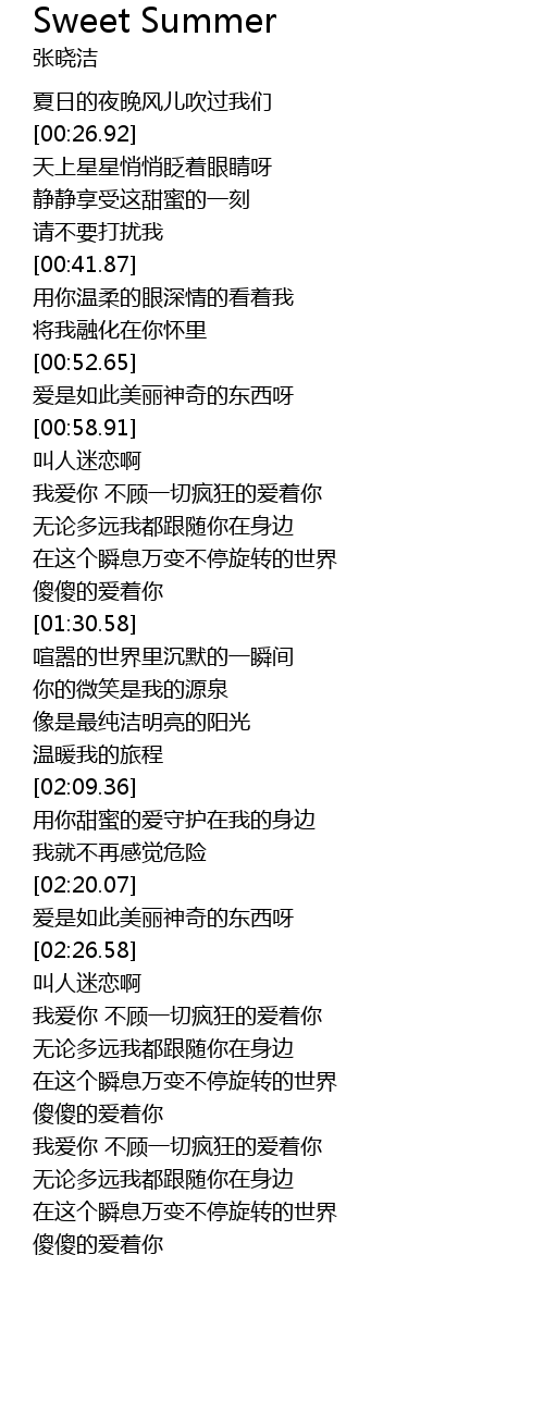 | [02:31.74] | 我爱你 不顾一切疯狂的爱着你 |