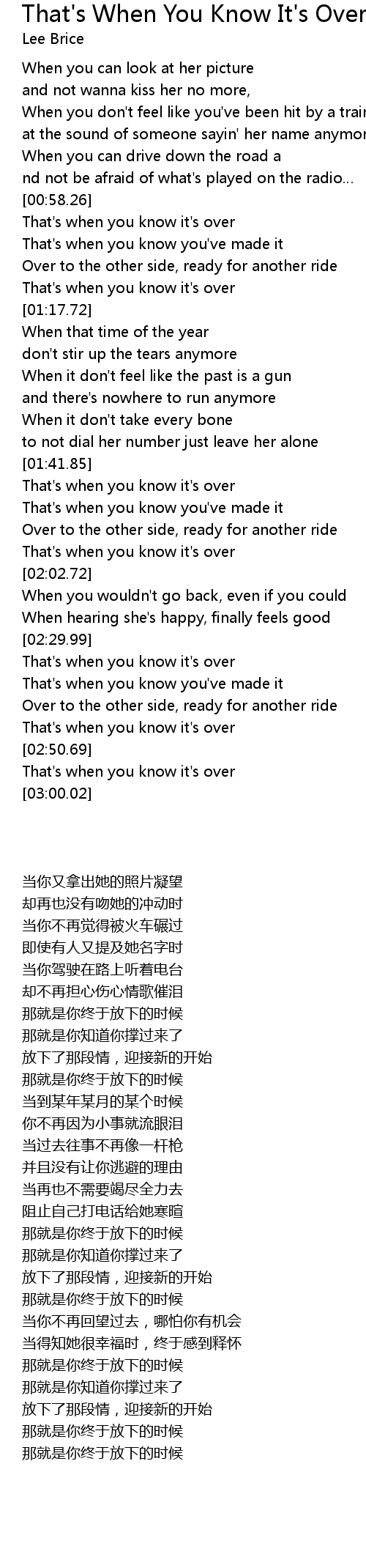 | [00:58.65] | That' s when you know it' s over |