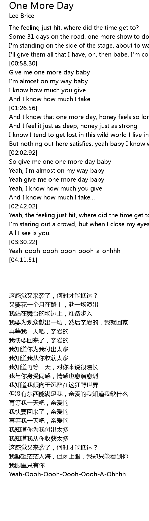 | [02:03.28] | So give me one one more day baby |