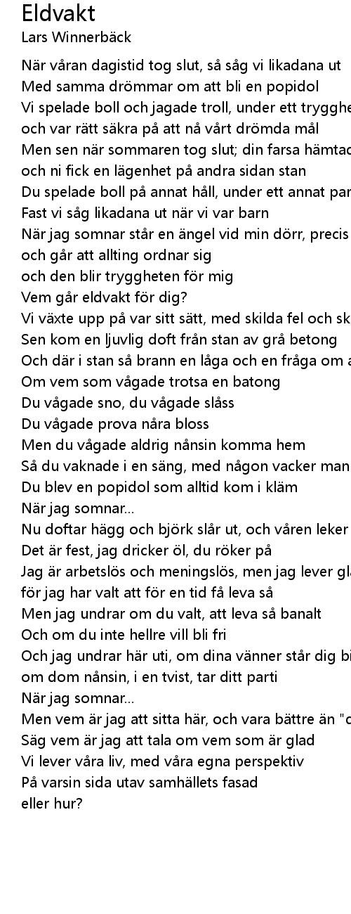 | N r jag somnar st r en ngel vid min d rr, precis som f rr | |