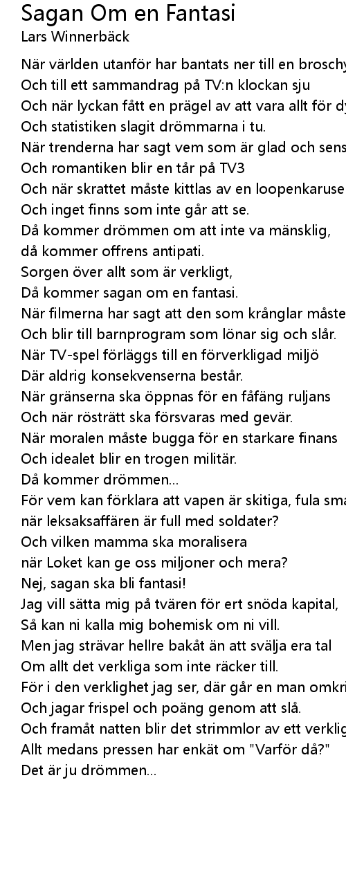 | Song | Sagan Om en Fantasi |