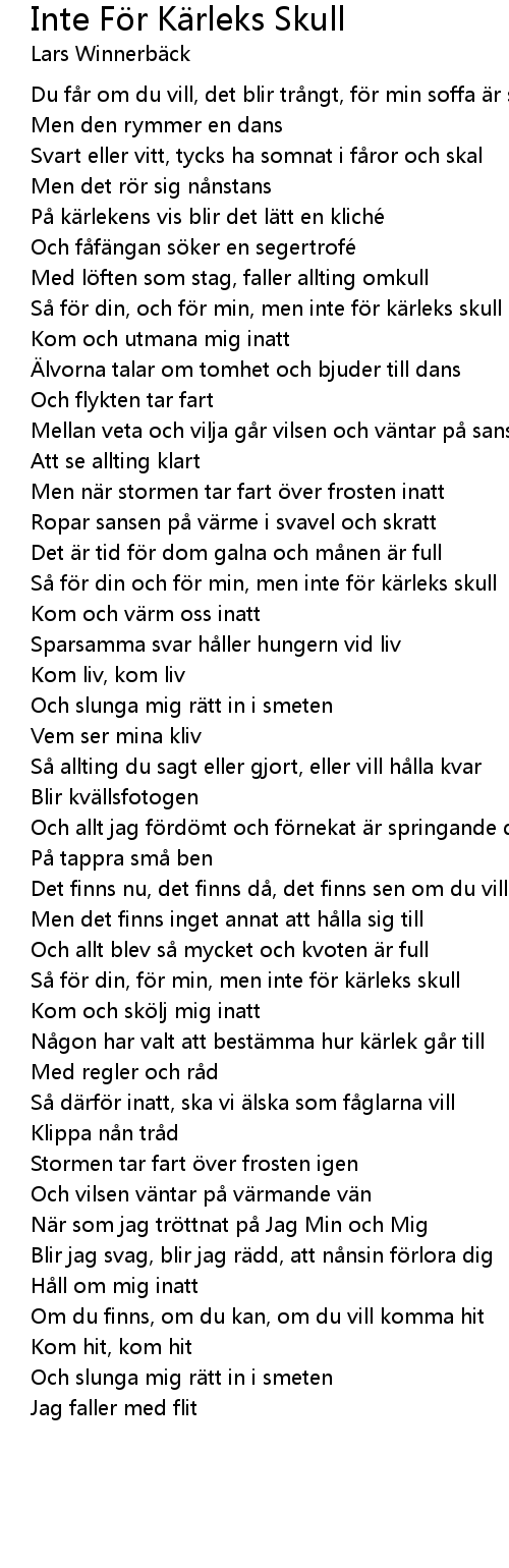 | S f r din, och f r min, men inte f r k rleks skull | |