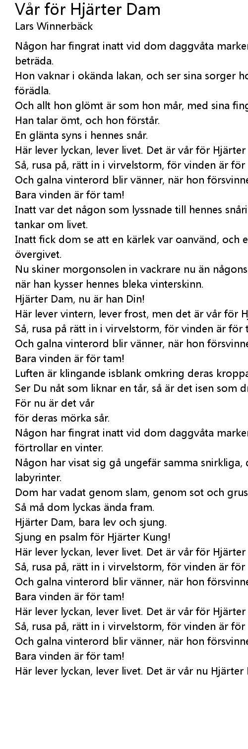 | H r lever vintern, lever frost, men det r v r f r Hj rter Dam. | |