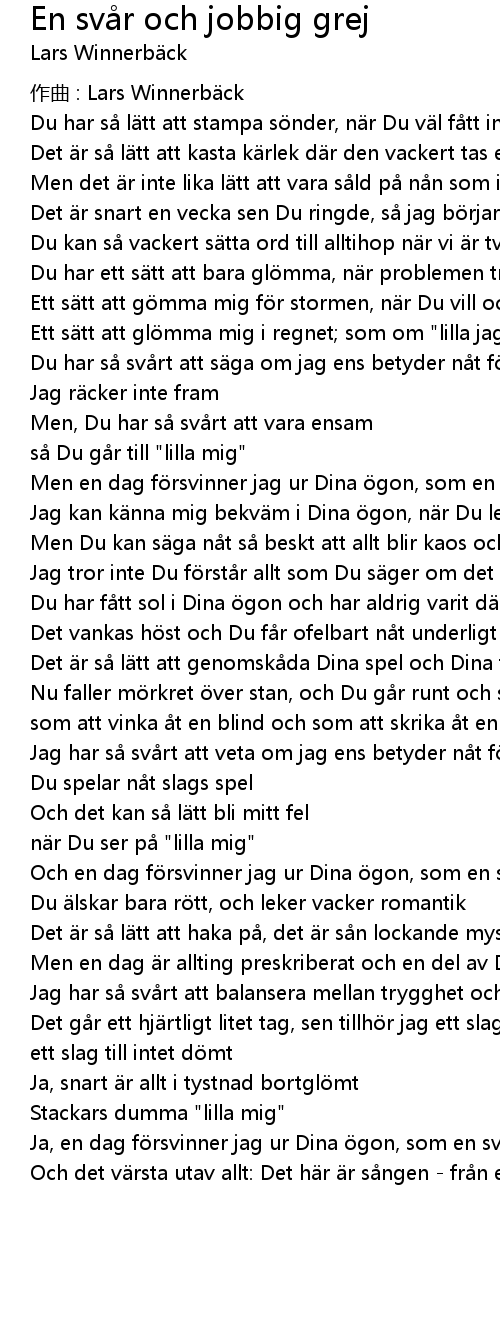 | Men en dag försvinner jag ur Dina ögon, som en svår och jobbig grej | |