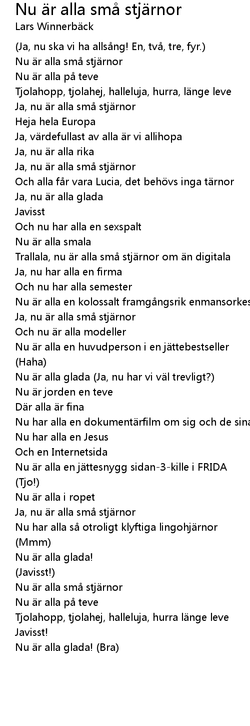 | Song | Nu är alla små stjärnor |