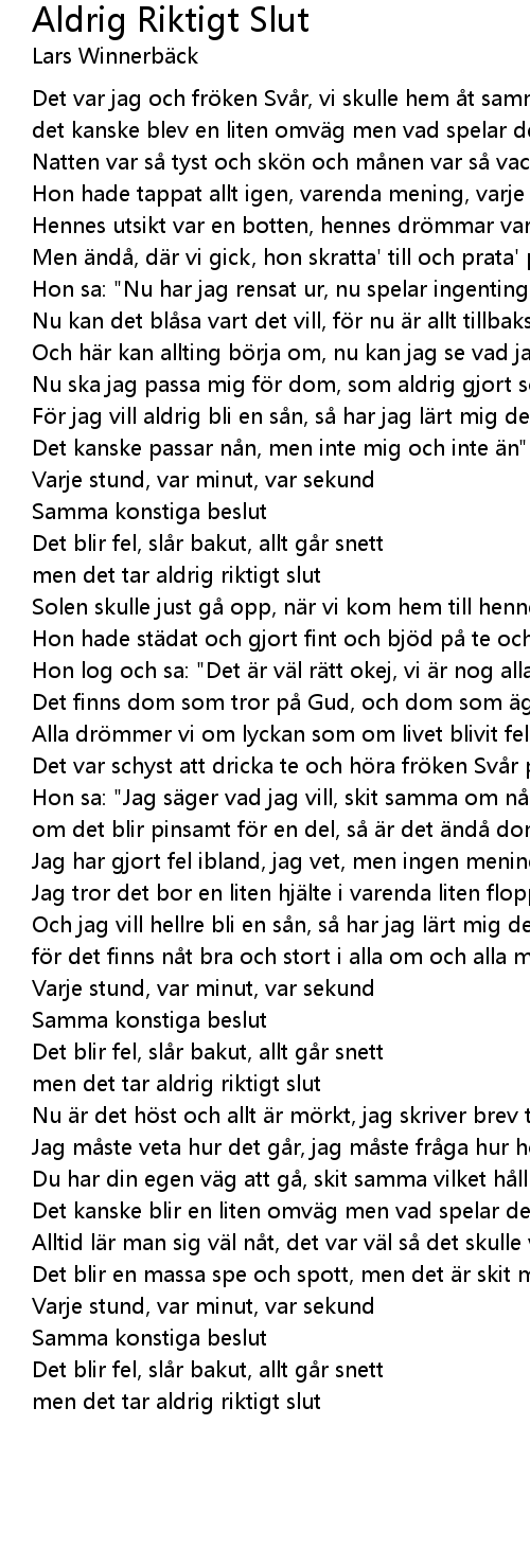 | men det tar aldrig riktigt slut |