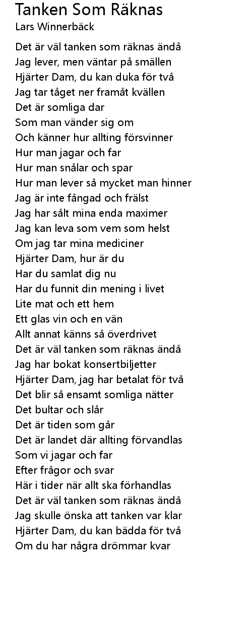 | Song | Tanken Som Räknas |