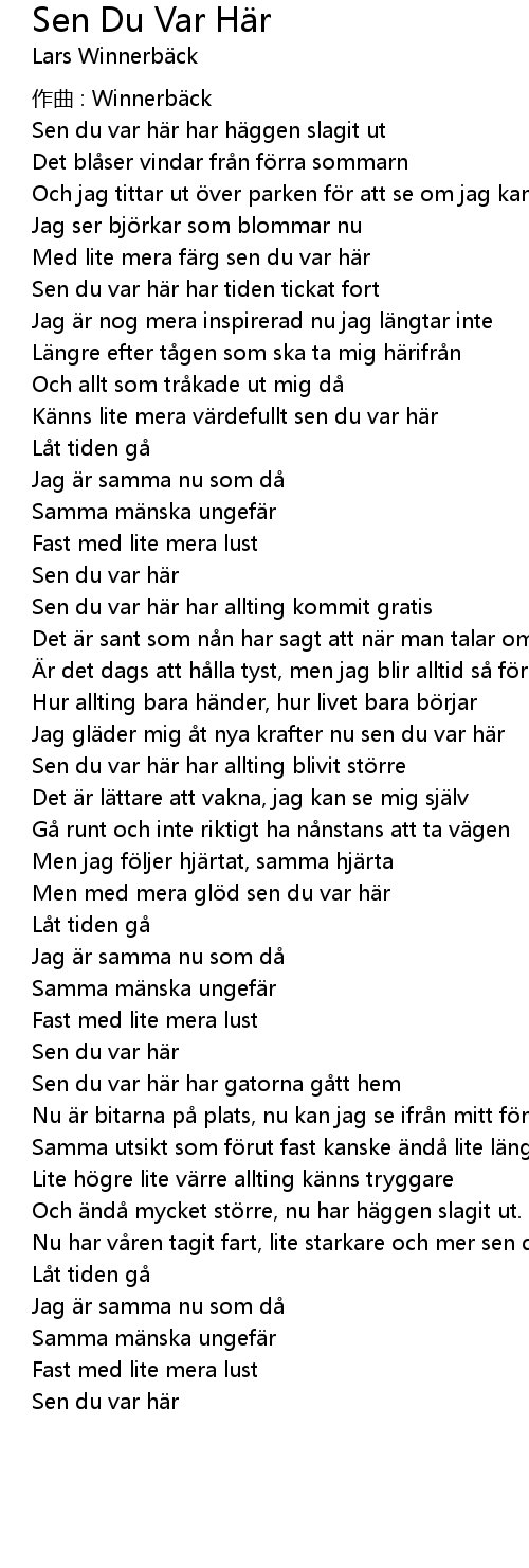 | Song | Sen Du Var Här |