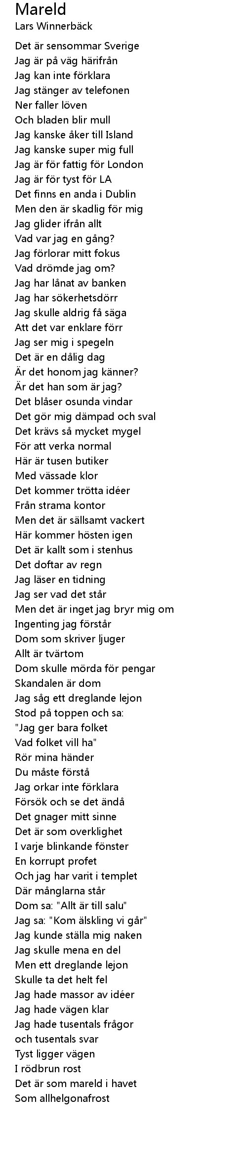 | Song | Mareld |