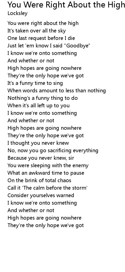 You Were Right About the High Lyrics