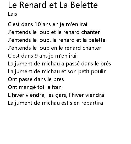 | J' entends le loup en le renard chanter | |