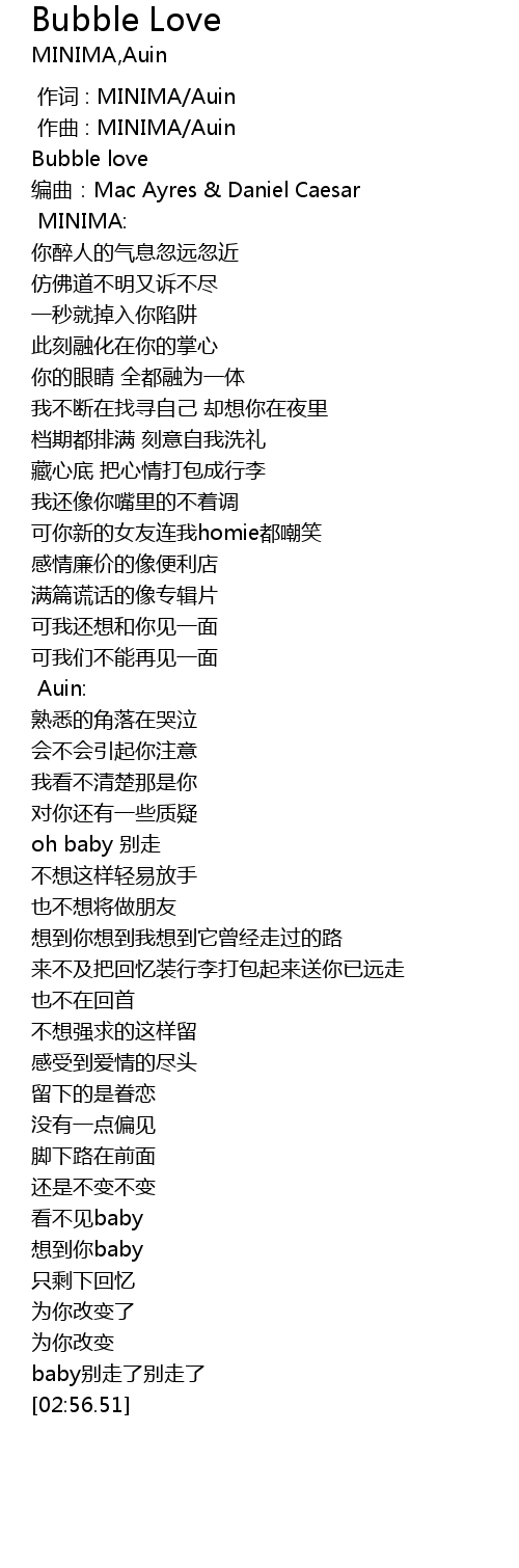 | [00:10.85] | biān qǔ: Mac Ayres Daniel Caesar |