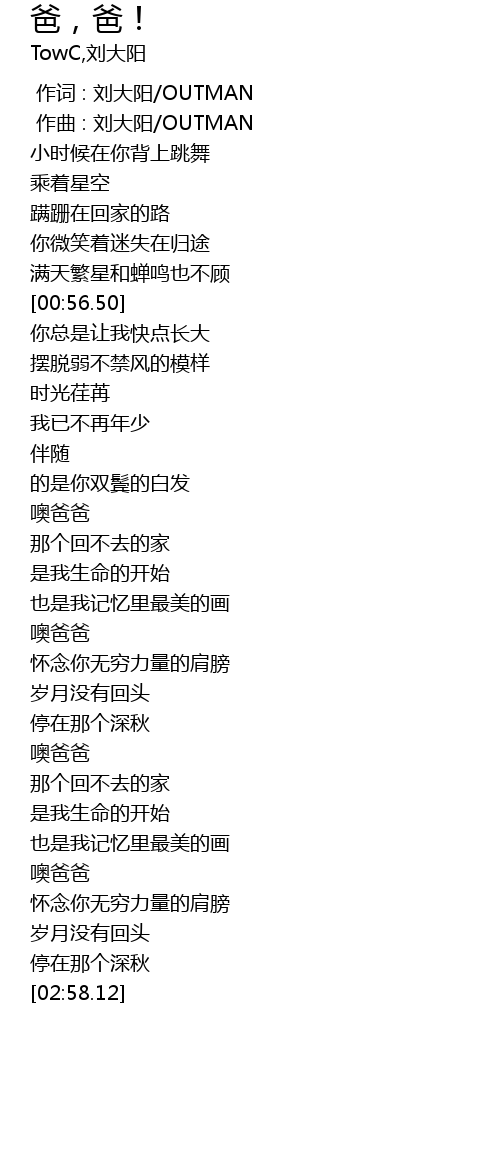 | [01:56.03] | 噢爸爸 |
