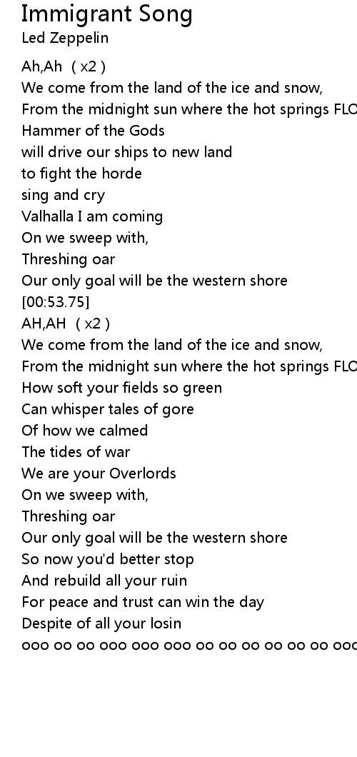 | Song | Immigrant Song |