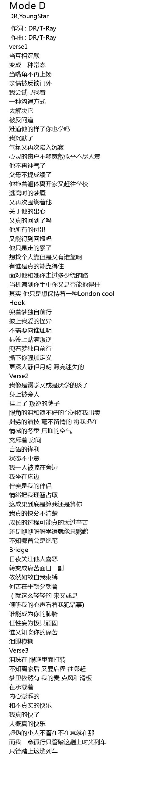 | [00:00.000] | 作词 : DR/T-Ray |