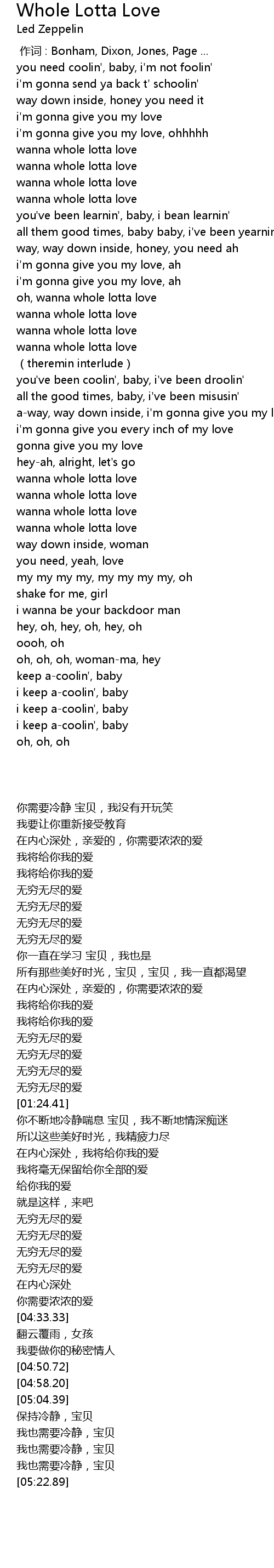 | [00:00.00] | 作词 : Bonham, Dixon, Jones, Page ... |