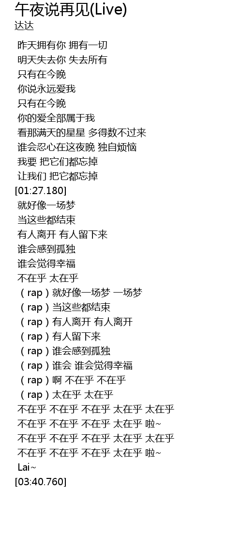 | [02:40.100] | (rap)啊 不在乎 不在乎 |
