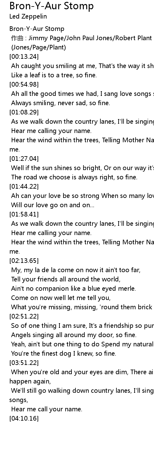 | [00:00.00] | 作曲 : Jimmy Page/John Paul Jones/Robert Plant |