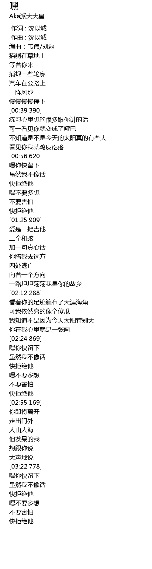 | [00:59.798] | hēi nǐ kuài liú xià |