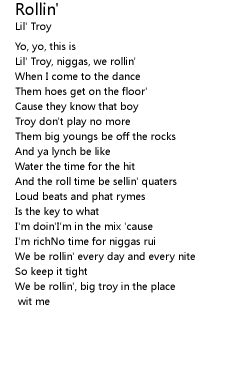 We be rollin', big troy in the place