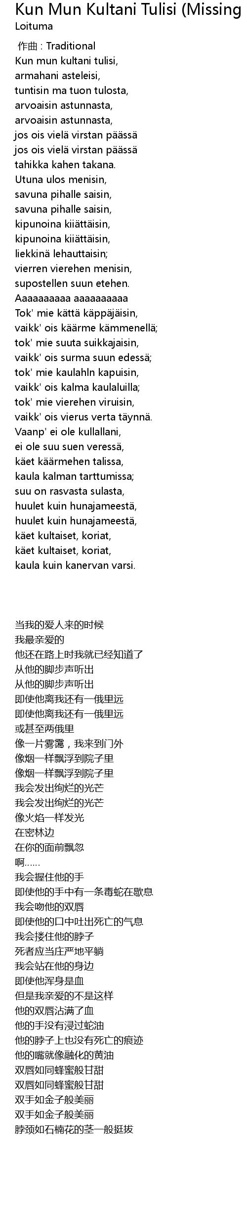 | Song | Kun Mun Kultani Tulisi (Missing Him) |