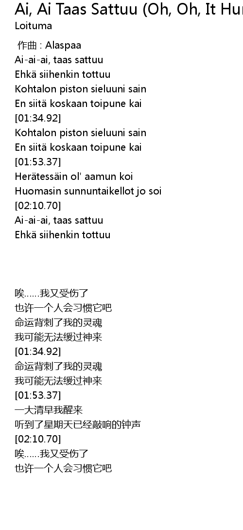 | [01:03.32] | Ai-ai-ai, taas sattuu |
