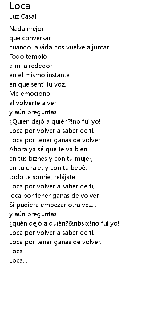 | loca por tener ganas de volver. | |