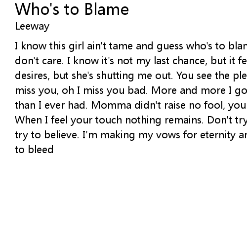 I know this girl ain't tame and guess who's to blame. She's not being fair, she don't care. I know it's not my last chance, but it feels that way. I've got desires, but she's shutting me out. You see the pleasure is turning to pain. I miss you, oh I miss you bad. More and more I go mad. I miss you OH SO BAD. More than I ever had. Momma didn't raise no fool, you know I always played you cool. When I feel your touch nothing remains. Don't try to run away from me, while I try to believe. I'm making my vows for eternity and now you say my heart's got to bleed |