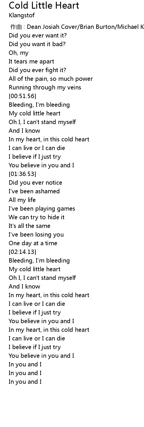 | [02:22.69] | My cold little heart |