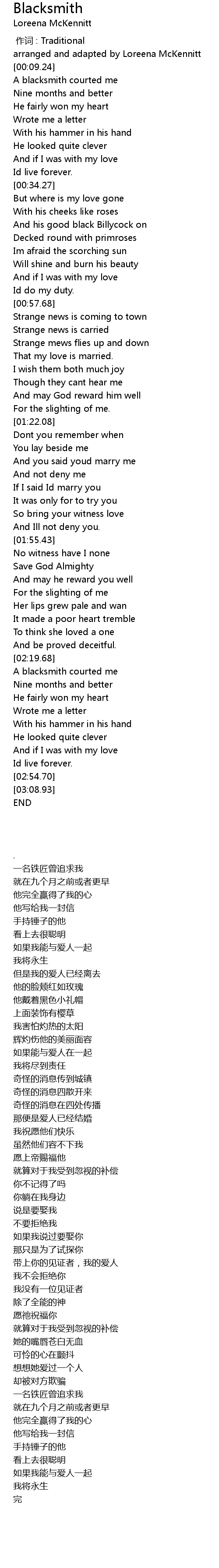 | [00:07.24] | arranged and adapted by Loreena McKennitt |