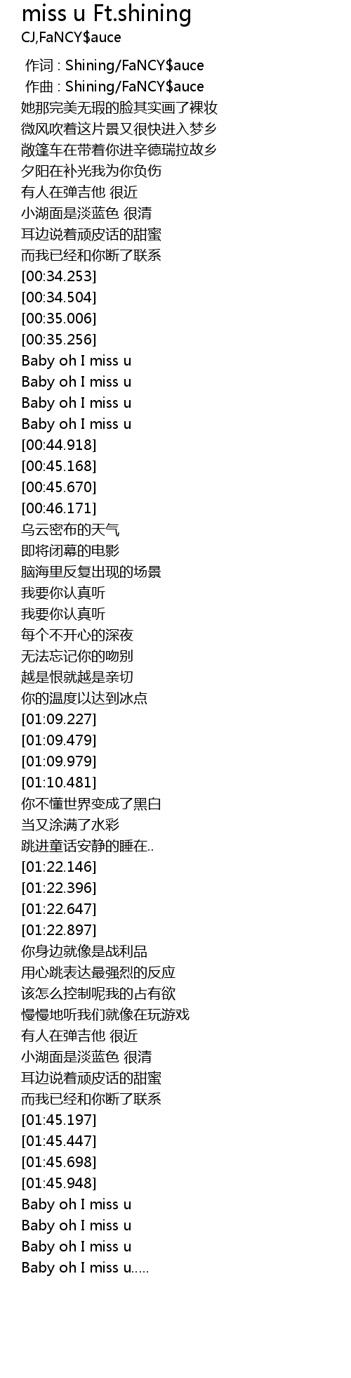 | [00:00.000] | 作词 : Shining/FaNCY$auce |