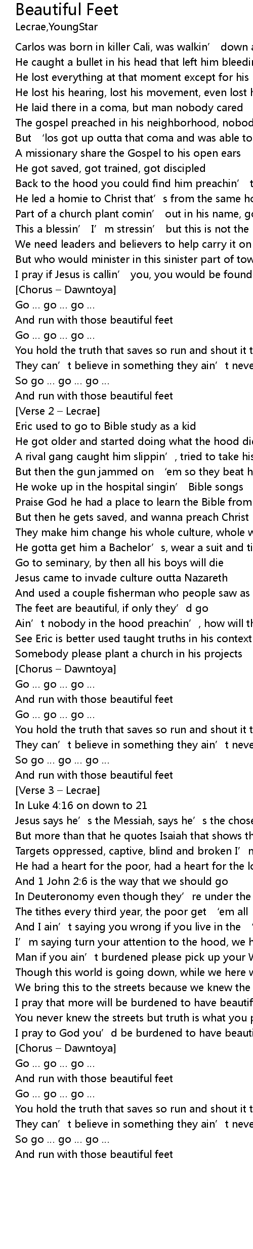 | I pray to God you’d be burdened to have beautiful feet | |