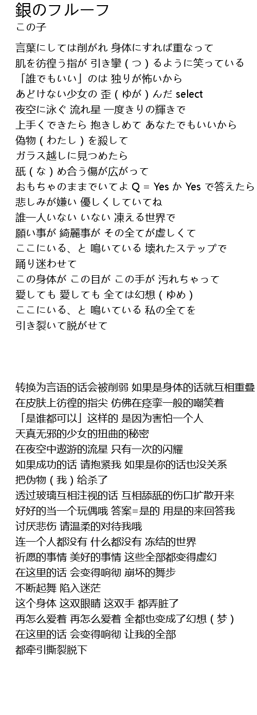 | [02:19.14] | この身体が この目が この手が 汚れちゃって |