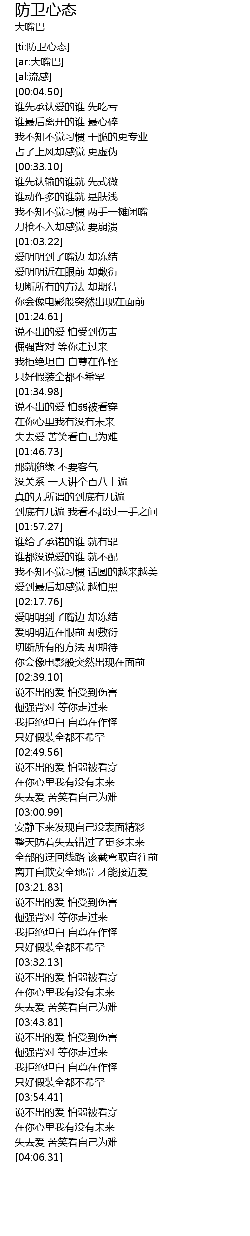 | [03:32.47] | 说不出的爱 怕弱被看穿 |