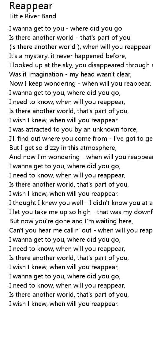 I need to know, when will you reappear, |
