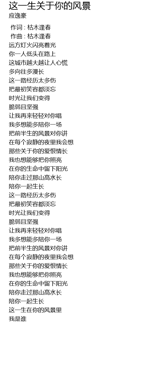 | [00:00.000] | 作词 : 枯木逢春 |