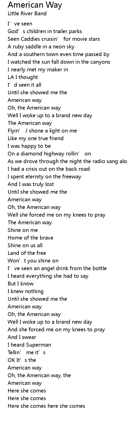 | Oh, the American way, the | |