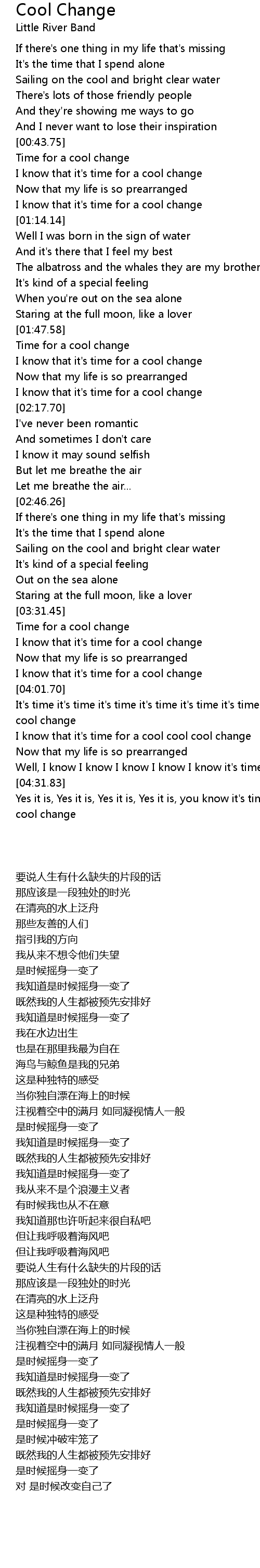 It's time it's time it's time it's time it's time it's time for a cool cool change |