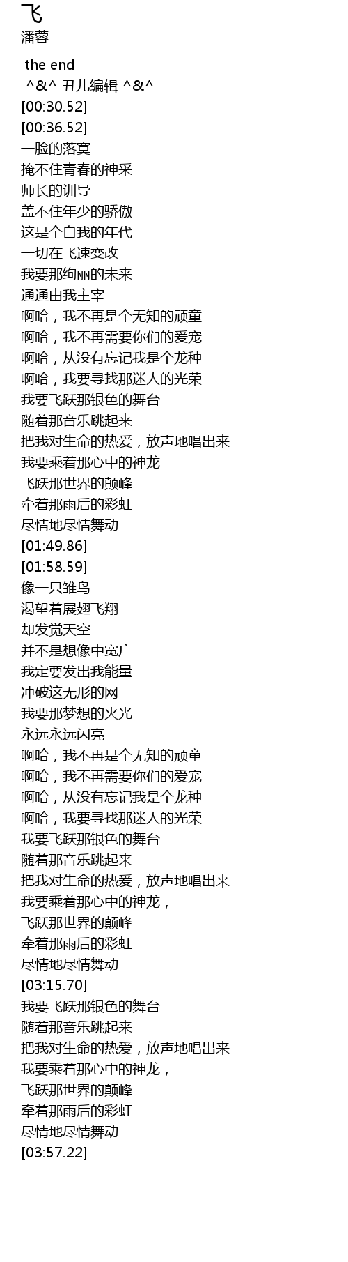 | [02:43.35] | 我要飞跃那银色的舞台 |