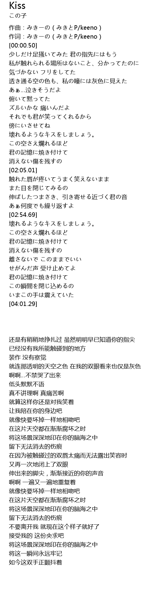 | [00:00.05] | 作词:みきーの(みきとP/keeno) |