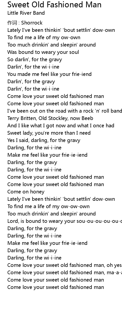 | Come love your sweet old fashioned man |
