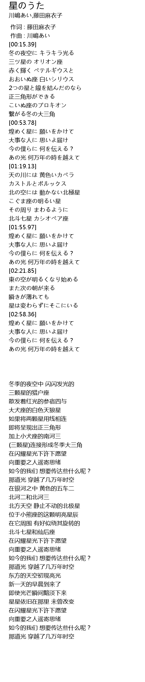 | [00:17.03] | 冬の夜空に キラキラ光る |