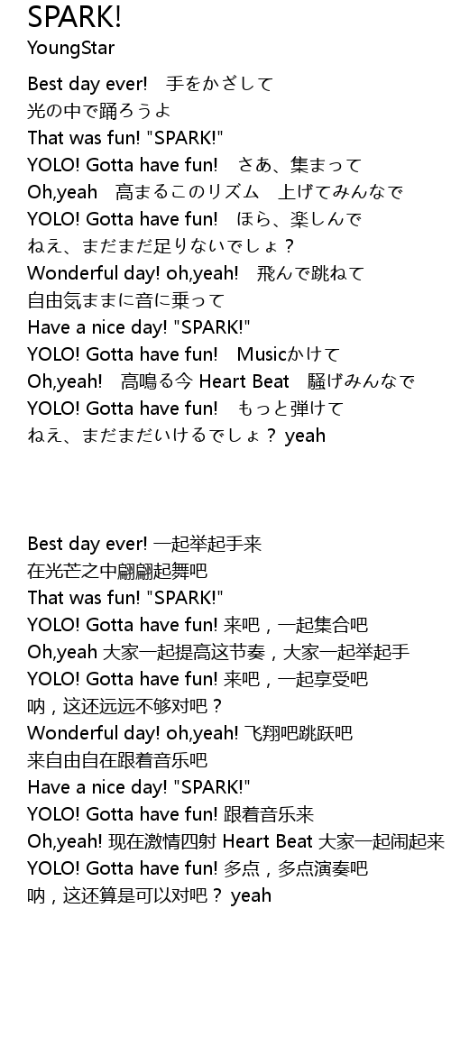 | [02:24] | YOLO! Gotta have fun! もっと弾けて |