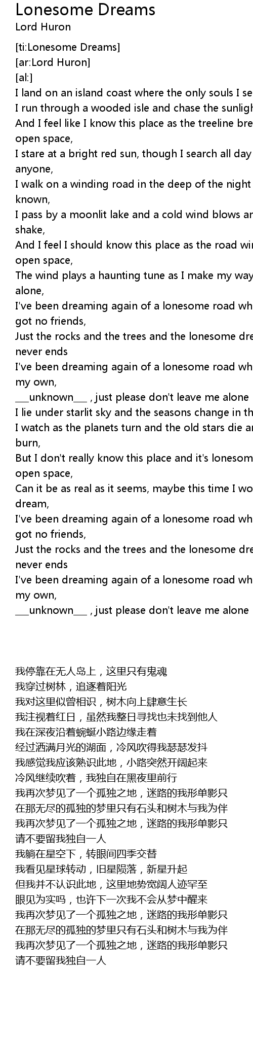 I've been dreaming again of a lonesome road where I'm lost and I'm on my own, |