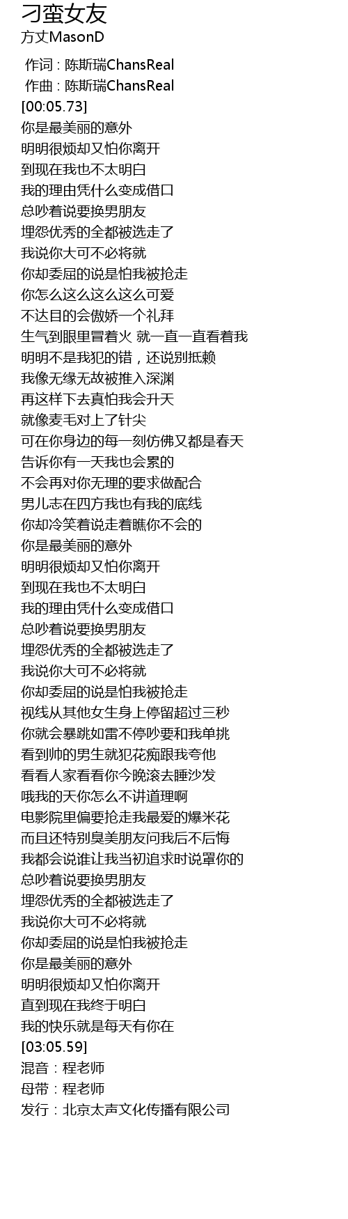 | [03:15.06] | 发行:北京太声文化传播有限公司 |