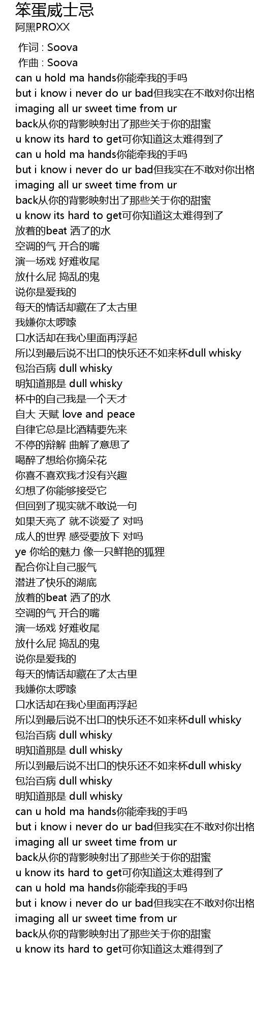 | [01:00.798] | suo yi dao zui hou shuo bu chu kou de kuai le hai bu ru lai bei dull whisky |