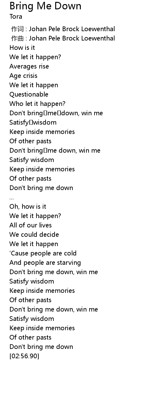| [02:53.73] | Don' t bring me down |