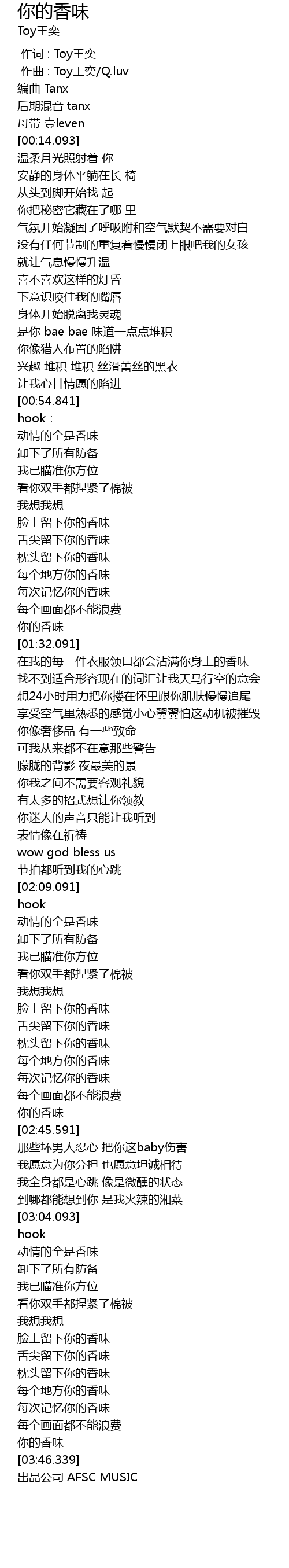| [02:37.091] | měi cì jì yì nǐ de xiāng wèi |