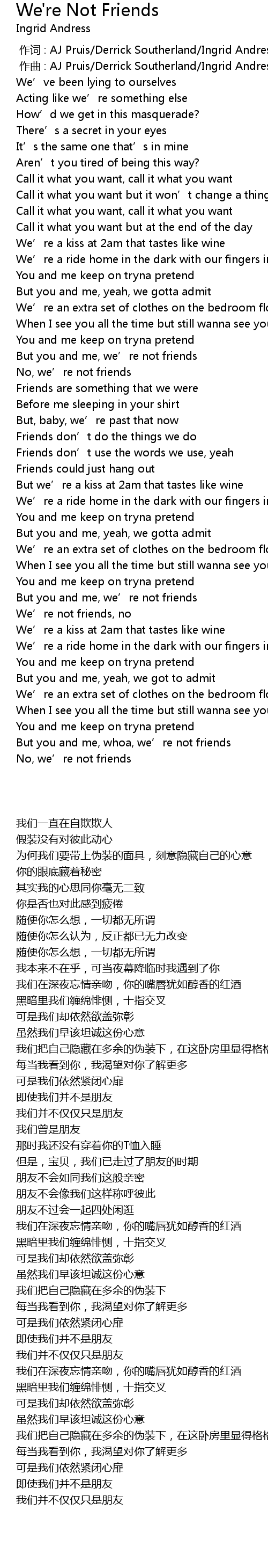 | [02:54.45] | But you and me, whoa, we' re not friends |