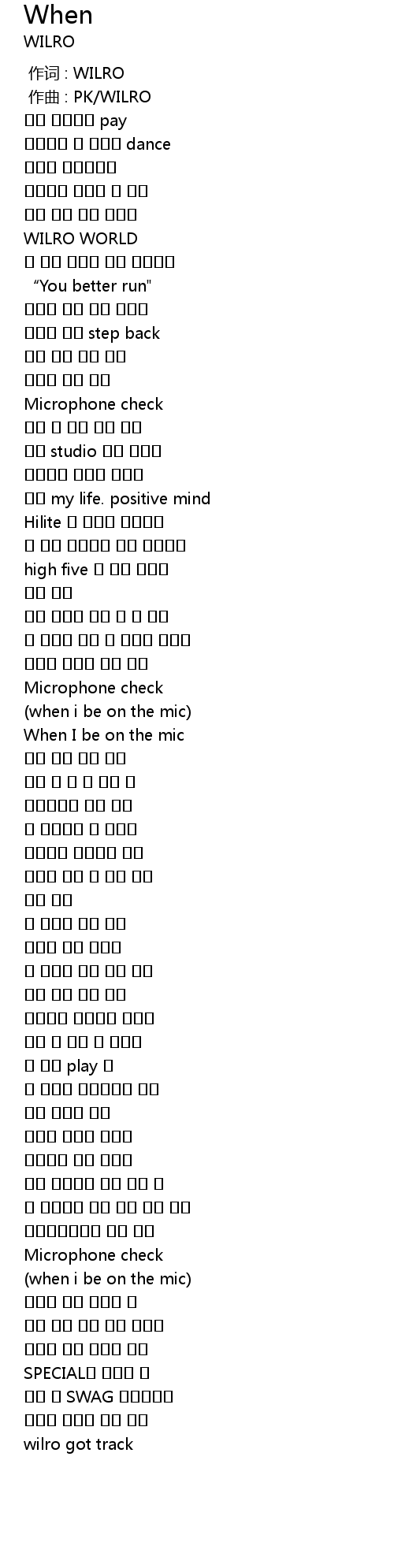 | [00:01.000] | 作曲 : PK/WILRO |